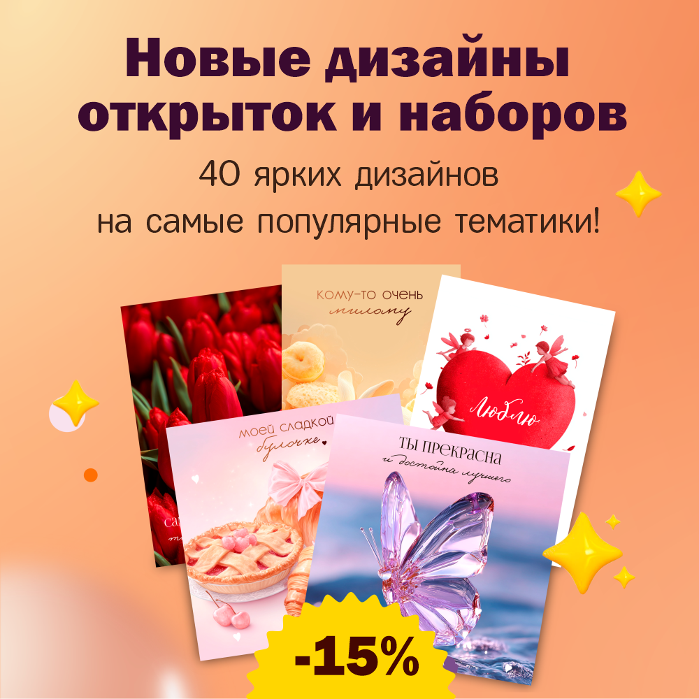 Мы подготовили 40 новых дизайнов открыток и наборов шоколада.