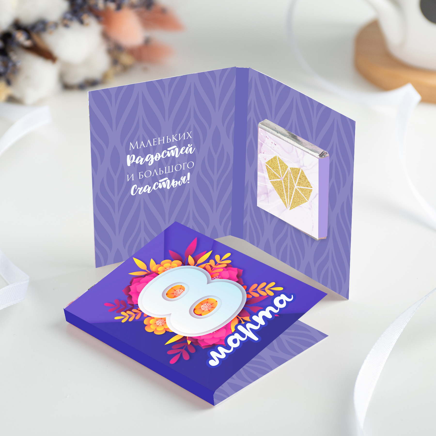 Мини-открытка "8 марта" (фиолетовая)