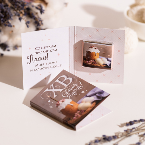Дизайнерская мини-октрытка с одной шоколадкой внутри