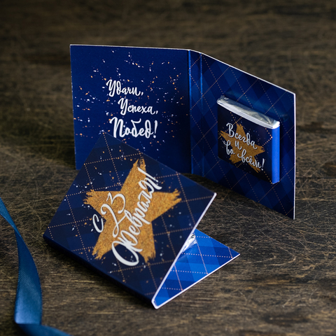 Внутри открытки - 1 шоколадка (вес 5 г., размер: 31 х 31 мм.)