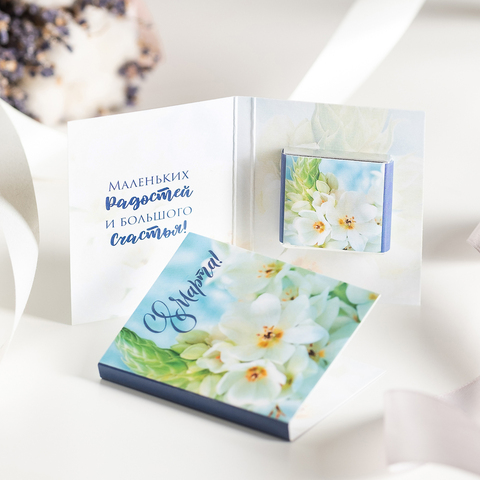Дизайнерская мини-октрытка с одной шоколадкой внутри