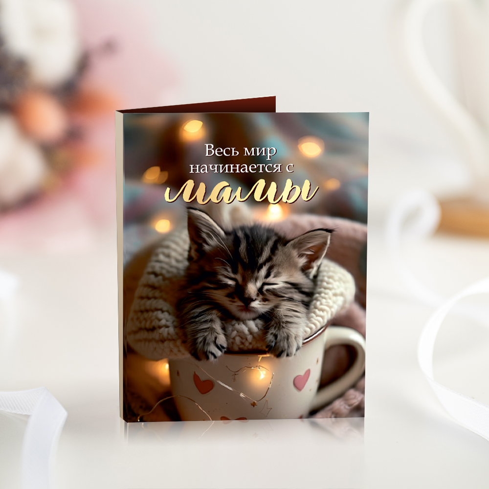 Мини-открытка "Весь мир начинается с мамы (котенок)"