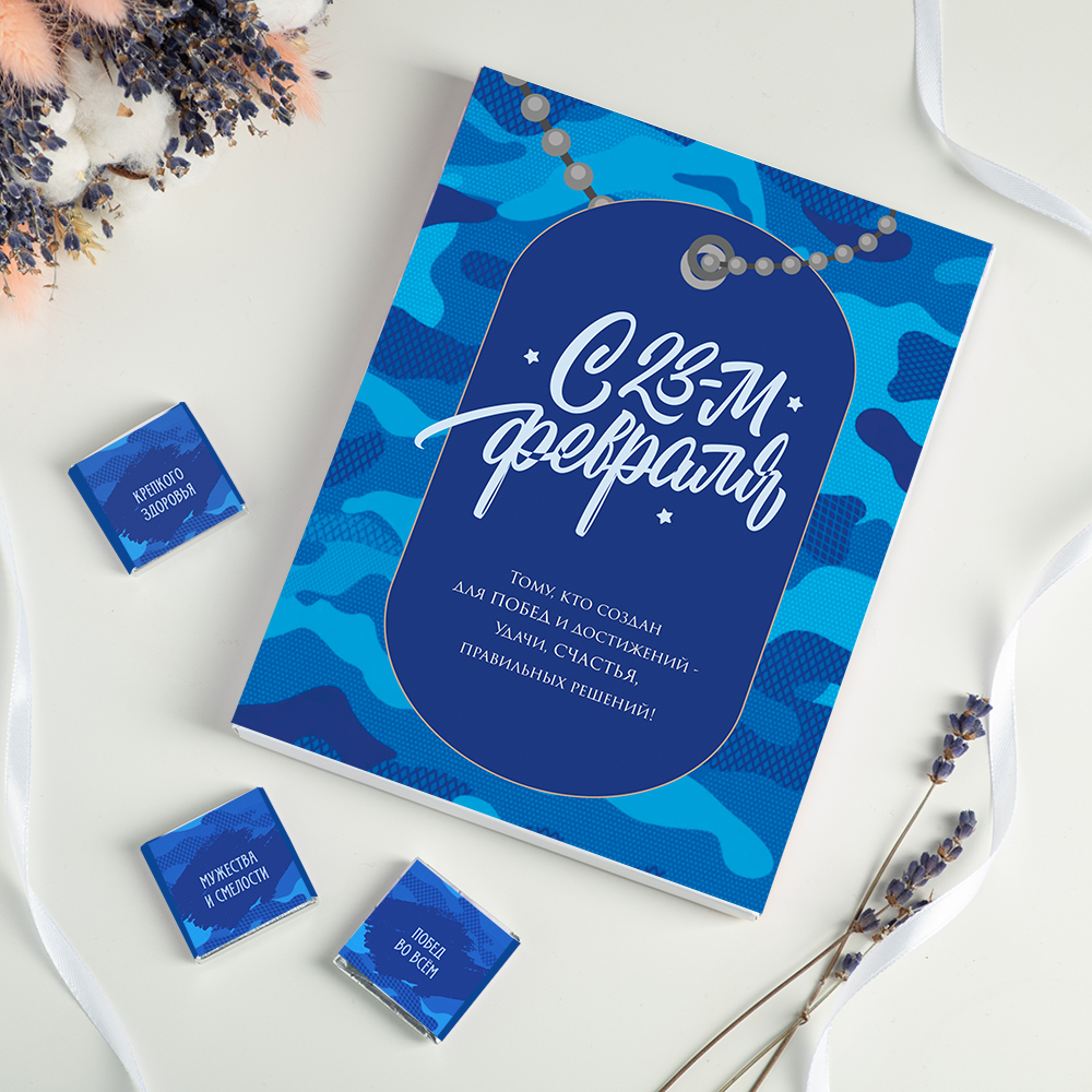Каждая шоколадка упакована в индивидуальную этикетку с пожеланием.