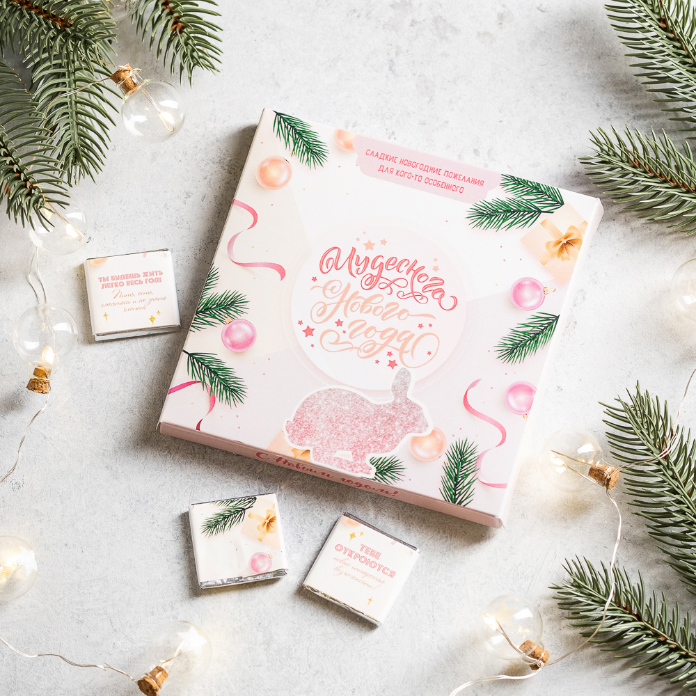 ● Набор 9 шоколадок "Чудесного нового года" (розовый с зайкой)