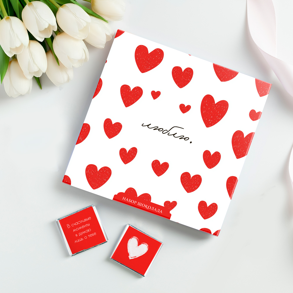 Каждая шоколадка упакована в индивидуальную этикетку с пожеланием.