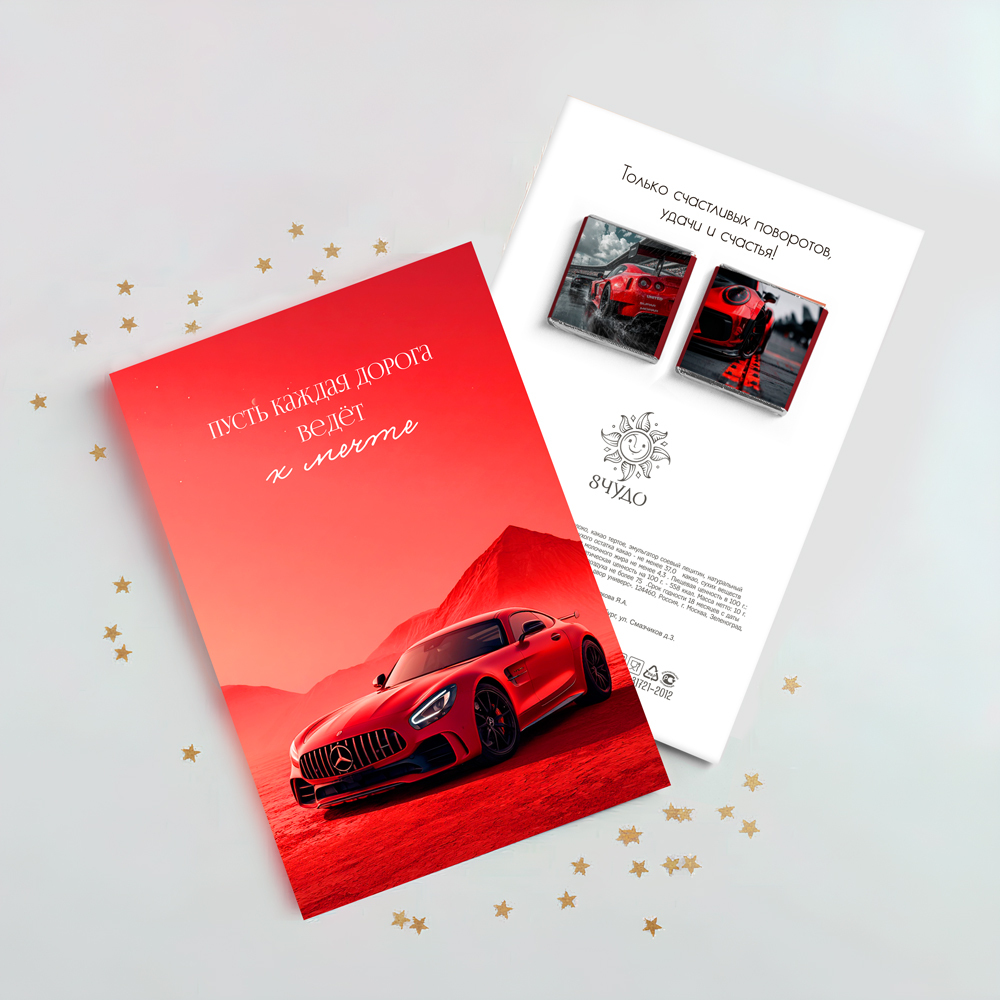 Открытка 2 шоколадки "Пусть каждая дорога ведёт к мечте (мерседес)"