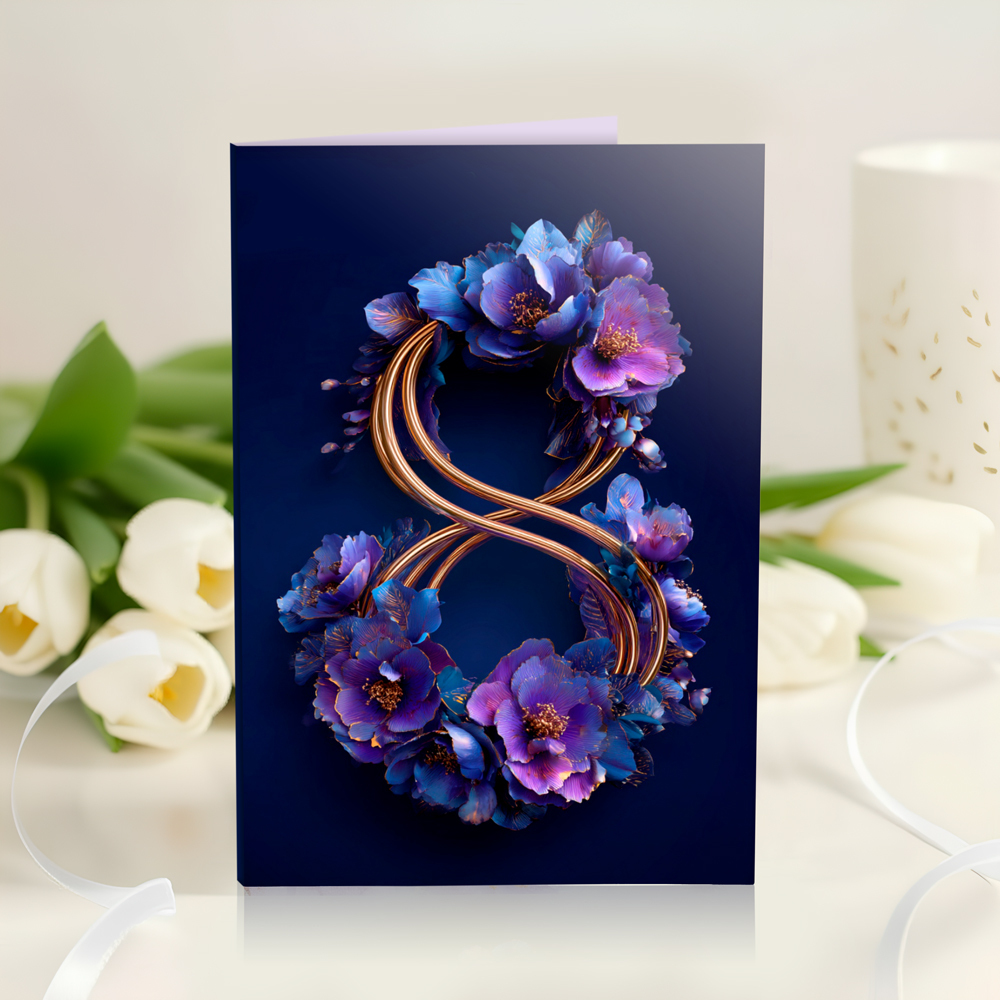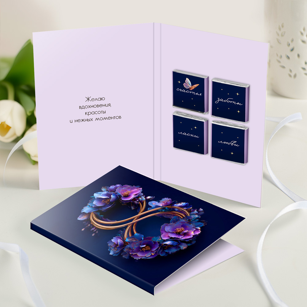 новинка Открытка 4 шоколадки "8 (тёмная с золотом и цветами)"