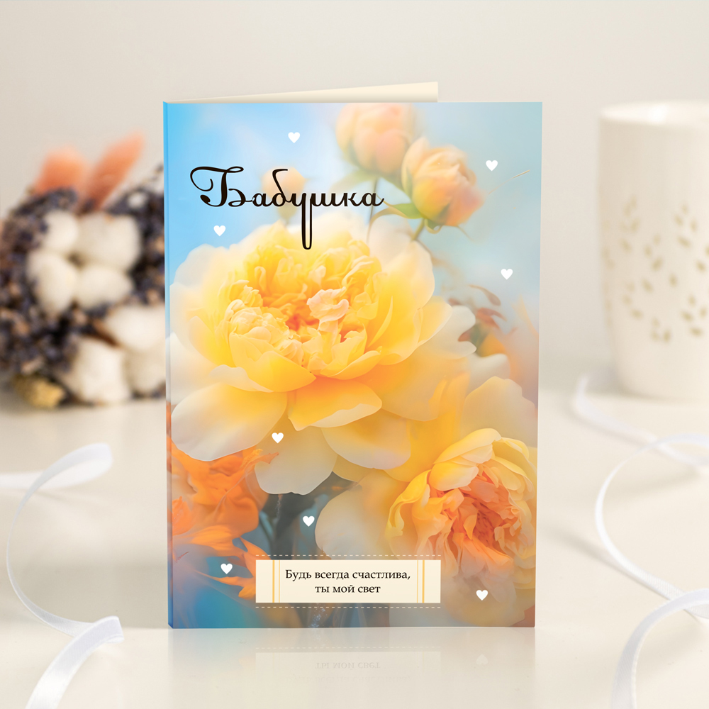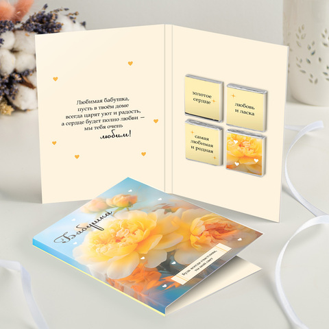 Открытка 4 шоколадки "Бабушка (жёлтая с цветами)"