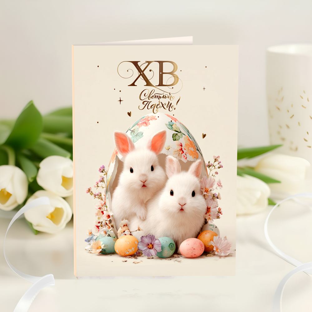 Открытка 4 шоколадки "ХВ (два кролика в яйце)"
