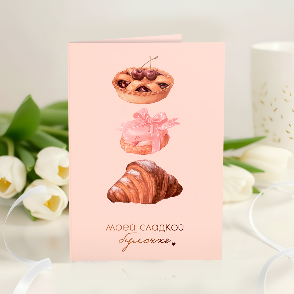 Открытка 4 шоколадки "Моей сладкой булочке"