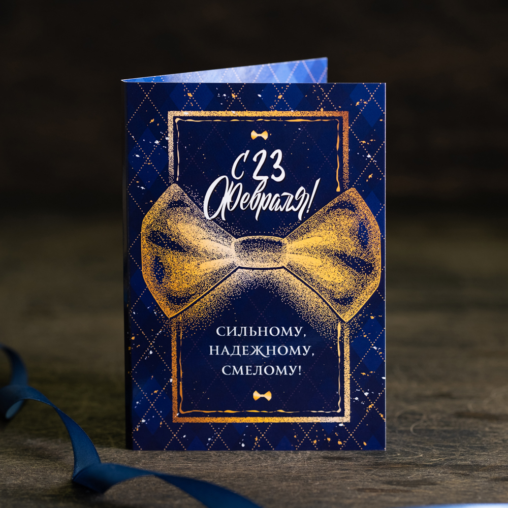 ● Открытка 4 шоколадки "С 23 февраля, сильному, надежному, смелому"