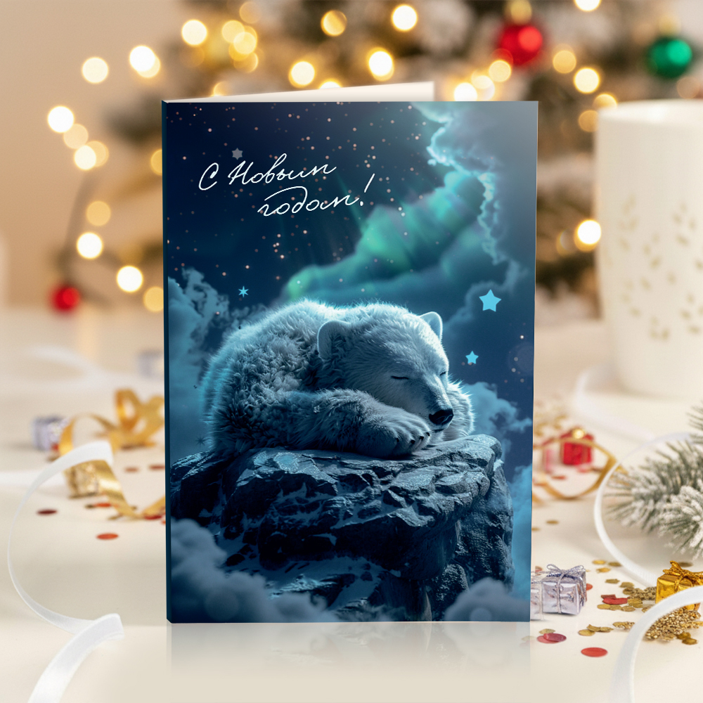 Открытка 4 шоколадки "С Новым годом! (белый медведь)"
