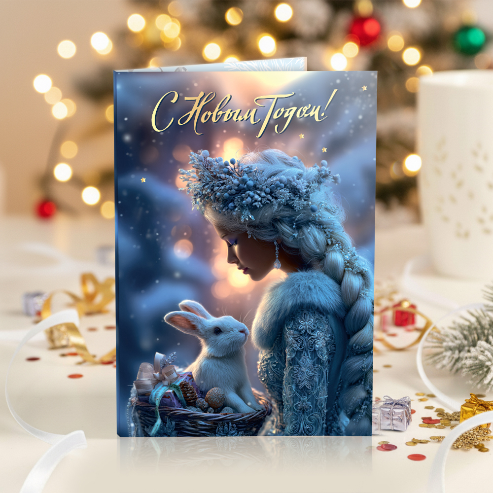 Открытка 4 шоколадки "С Новым годом! (снегурочка с зайкой)"