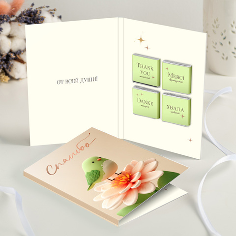новинка Открытка 4 шоколадки "Спасибо (зелёная птичка)"