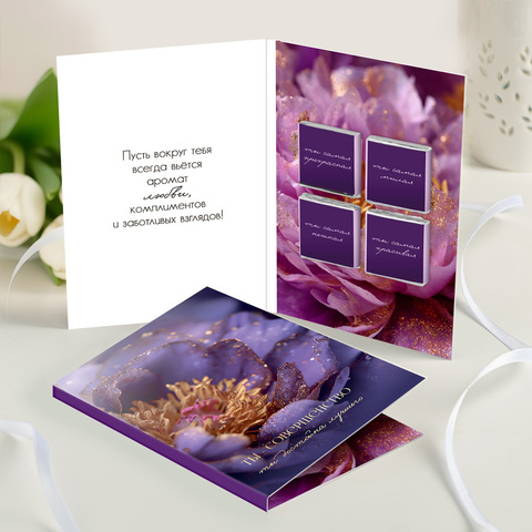 новинка Открытка 4 шоколадки "Ты - совершенство (фиолетовый цветок)"