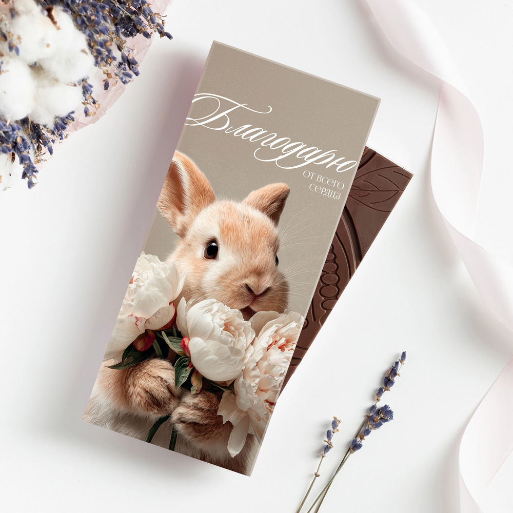 Шоколад 85 г. "Благодарю всего сердца (кролик с цветами)"